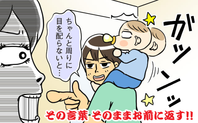 「ダンナが息子を肩車しながら私に話しかけてきて、ドアで低くなっていることに気がつかず息子が頭をぶつけてしまった」